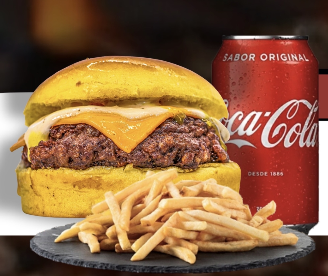 REFRI + FRITAS PÃO BRIOCHE, 1 HAMBÚRGUER DE 150 G (CARNE ARTESANAL), FATIA DE QUEIJO CHEDDAR, TOMATE, ALFACE E MOLHO ESPECIAL DA CASA.