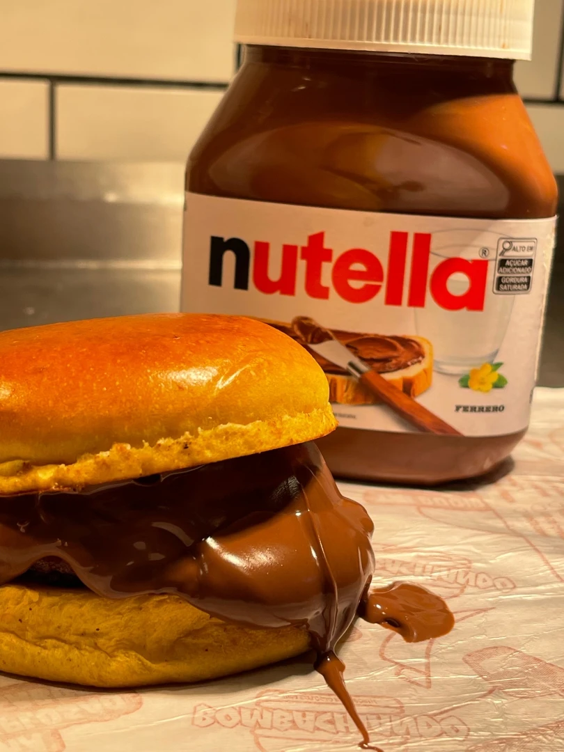 Pão Brioche, Carne Artesanal de 100g, Queijo e Nutella. Uma explosão de sabores inusitados que une o salgado e o doce de forma surpreendente. Uma experiência gastronômica que desafia o comum e vai despertar seu paladar!