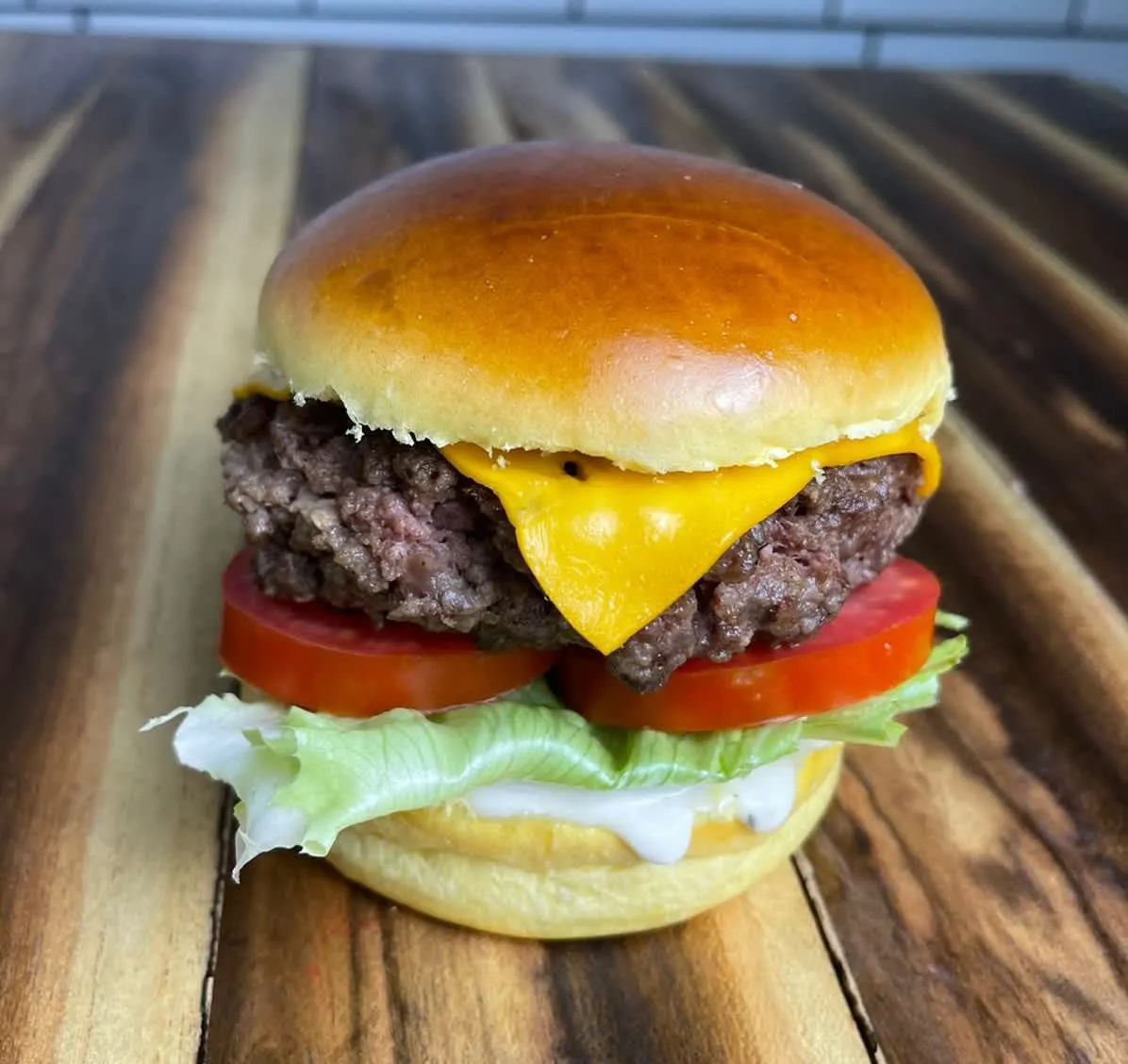 Pão brioche, hambúrguer de 100g, queijo cheddar derretido, molho especial e salada.