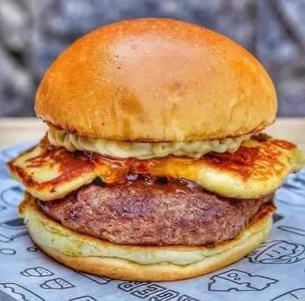 Pão brioche, 1 hambúrguer de 100g, queijo coalho, molho especial e salada.